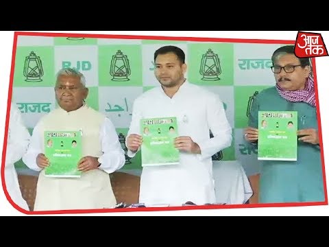 बिहार में राष्ट्रीय जनता दल (राजद) का घोषणापत्र सोमवार को जारी हुई. तेजस्वी यादव ने निजी क्षेत्र में आरक्षण लागू करने का वादा किया, इसके अलावा मंडल कमीशन के मुताबिक आरक्षण देने की बात कही. उन्होंने कहा कि दलितों, पिछड़ों को जनसंख्या के आधार पर आरक्षण दिया जाएगा, साथ ही प्रवासी बिहारियों के लिए हेल्प लाइन जारी की जाएगी. तेजस्वी यादव ने कांग्रेस की न्याय योजना का समर्थन किया, इसके अलावा 2021 में जातीय आधार पर जनगणना करवाने का ऐलान किया. #RJD #RJDManifesto #TejashwiYadav #LokSabhaElections2019 AajTak | Hindi News | Aaj Tak Live | Aajtak News | आज तक लाइव ------------------------------------------------------------------------------------------------------------- AajTak Live TV Watch the latest Hindi news Live on the World's Most Subscribed News Channel on YouTube. Aaj Tak News Channel: आज तक भारत का सर्वश्रेष्ठ हिंदी न्यूज चैनल है । आज तक न्यूज चैनल राजनीति, मनोरंजन, बॉलीवुड, व्यापार और खेल में नवीनतम समाचारों को शामिल करता है। आज तक न्यूज चैनल की लाइव खबरें एवं ब्रेकिंग न्यूज के लिए बने रहें । Aaj Tak is India's best Hindi News Channel. Aaj Tak news channel covers latest news in politics, entertainment, Bollywood, business and sports. Stay tuned for all the breaking news in Hindi ! Download India’s No. 1 Hindi News Mobile App : http://bit.ly/2EHxTlT Subscribe To Our Channel: http://bit.ly/2xTASBc Official website: http://bit.ly/2zFsgBI Like us on Facebook http://bit.ly/1uTfXUW Follow us on Twitter http://twitter.com/aajtak Subscribe to our other network channels: The Lallantop https://www.youtube.com/c/thelallantop India Today: http://www.youtube.com/channel/UCYPvA... SoSorry: https://www.youtube.com/user/sosorryp... Tez: http://www.youtube.com/user/teztvnews Dilli Aajtak: http://www.youtube.com/user/DilliAajtak